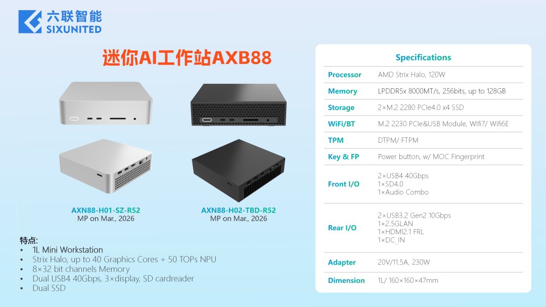 제품 SIXUNITED, 1.2리터 미니 워크스테이션 AXB88에 AMD 스트릭스 헤일로 탑재 **번역본뉴스입니다. 오역이 있을수 있습니다. 식스유나이티드(SIXUNITED)가 AMD의 스트릭스 헤일로(Strix Halo) 플랫폼을 기반으로 한 컴팩트... newfile 2026.01.25