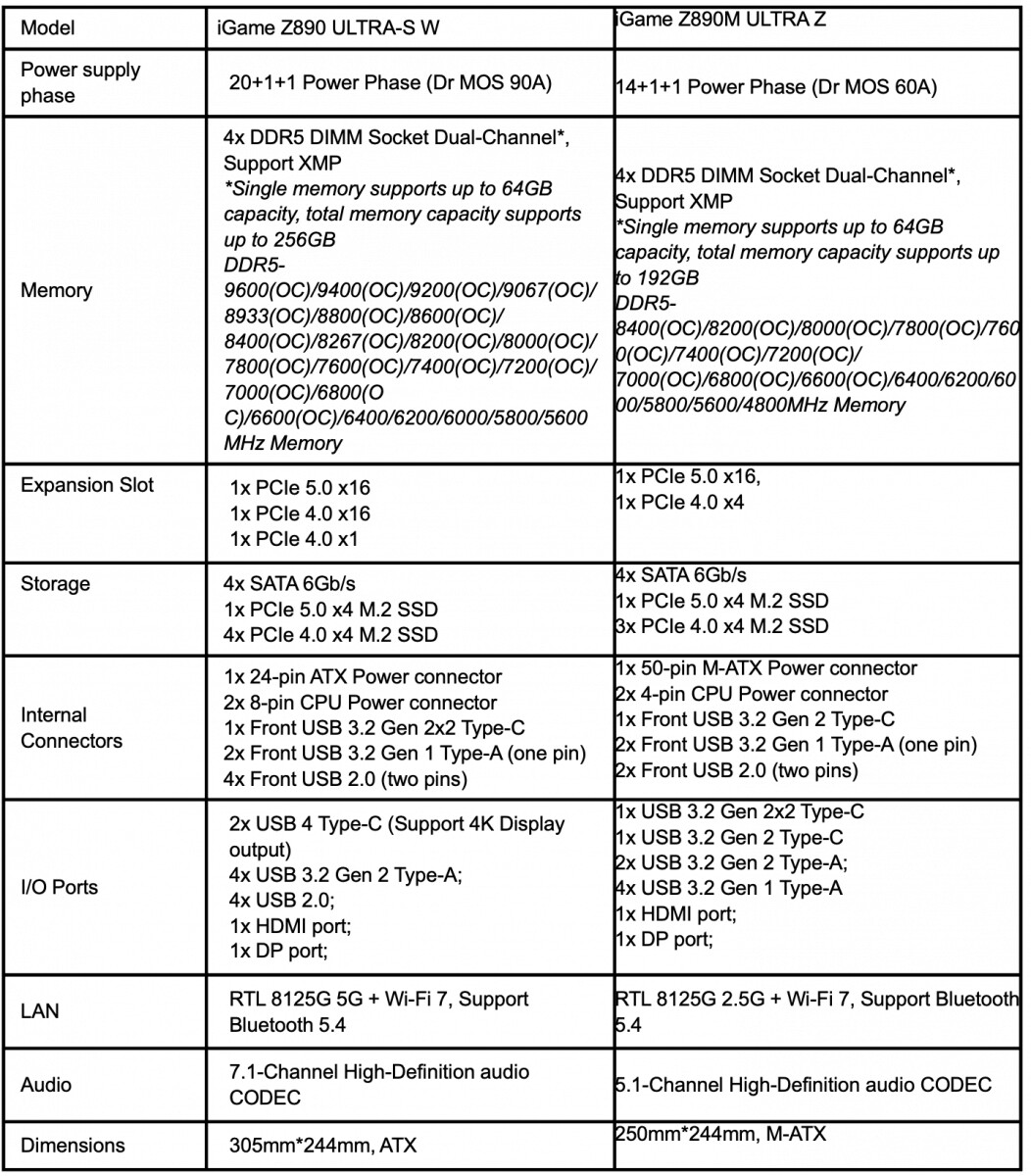3. COLORFUL, iGame Z890 ULTRA-S W 및 iGame Z890M ULTRA Z 메인보드 공개
