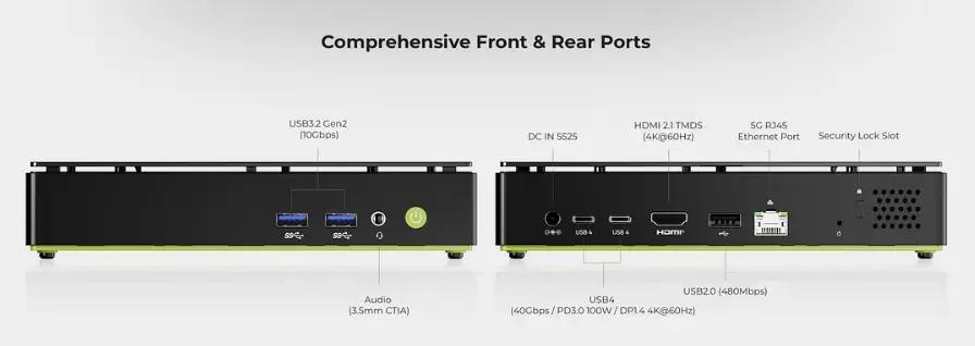 K13의 주요 특징 중 하나는 디스플레이 출력 기능입니다. 이 시스템에는 1개의 HDMI 포트와 2개의 USB4 인터페이스가 포함되어 있어, 최대 4K 60Hz 해상도로 3대의 디스플레이를 동시에 구동할 수 있습니다. 이로 인해 화면 공간이 중요한 다중 모니터 워크스테이션, 생산성 환경 또는 콤팩트한 배치에 적합합니다.